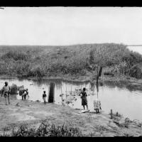 Indigenous people on river bank, January 21, 1920