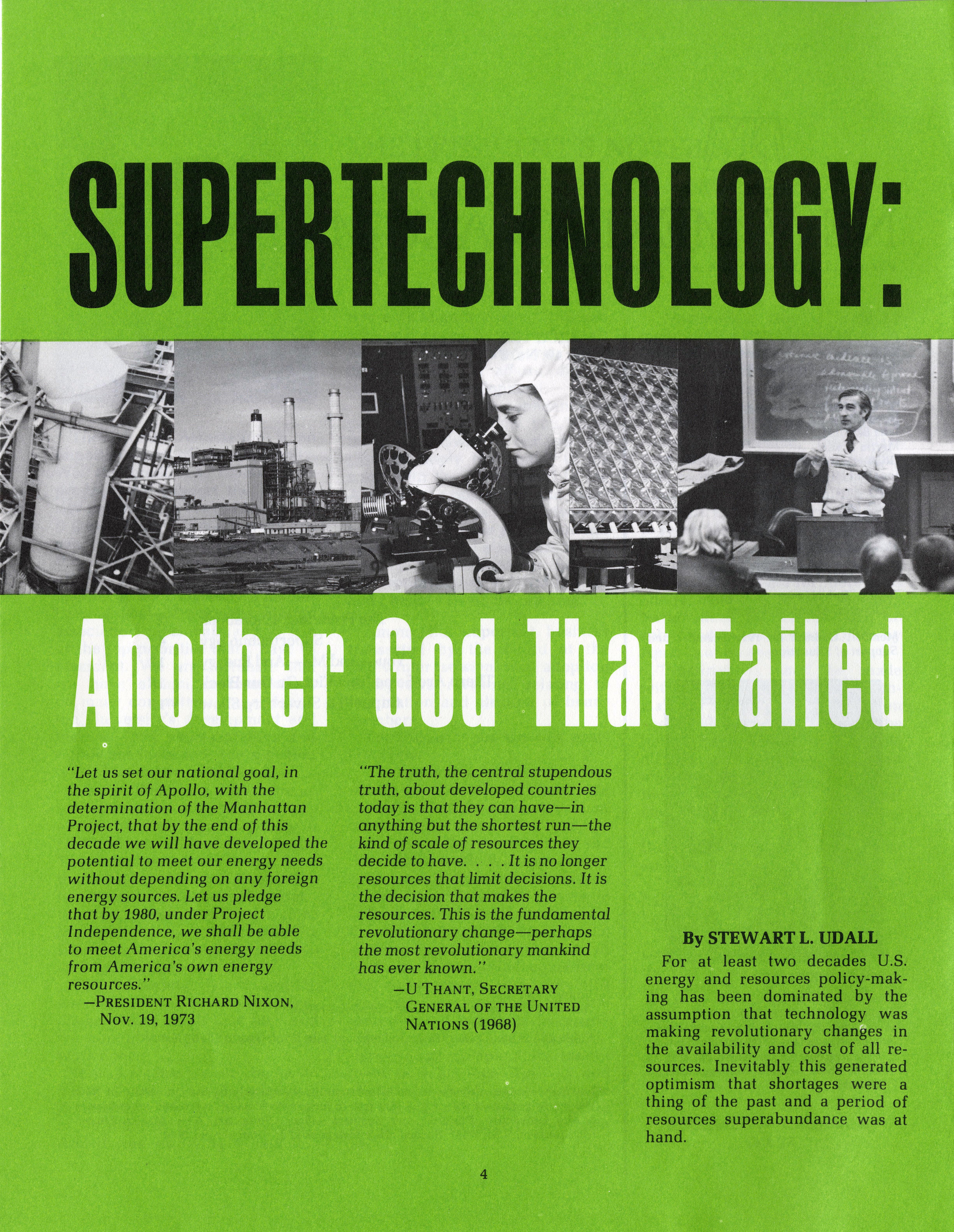 Supertechnology: Another God That Failed, New Mexico Alumnus, March 1977.
