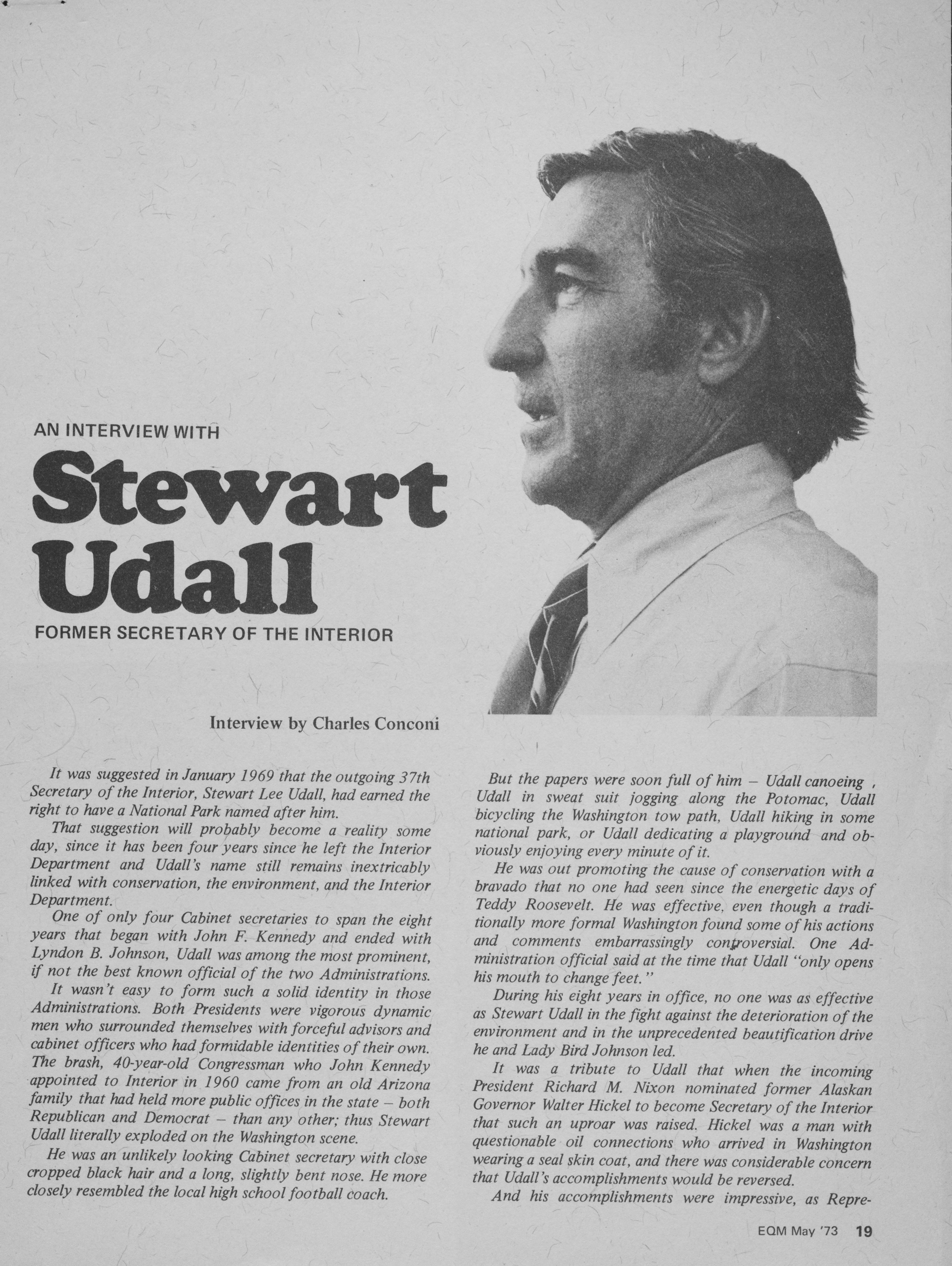 An Interview With Stewart Udall Former Secretary of the Interior, EQM, May 1973.