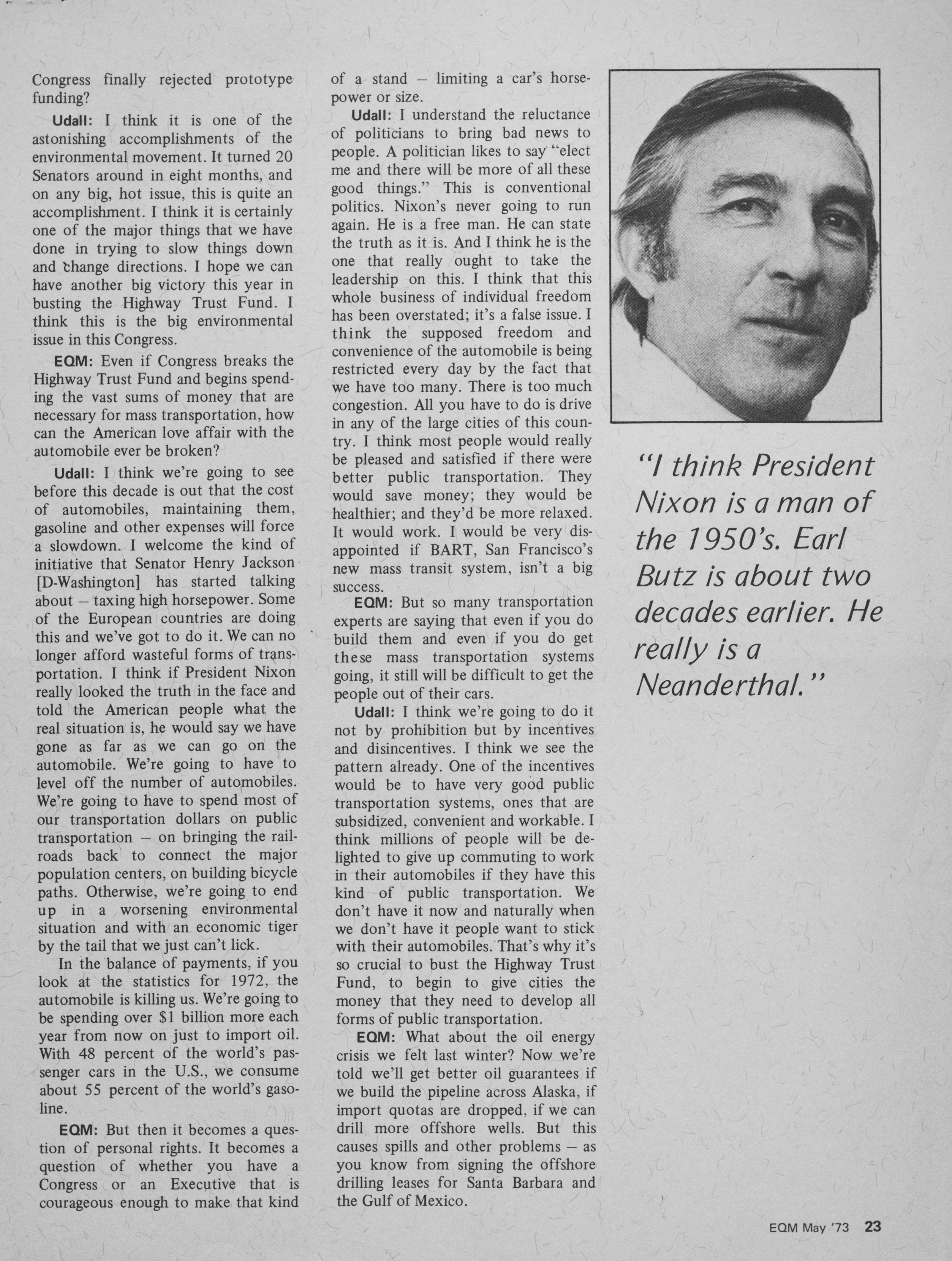 An Interview With Stewart Udall Former Secretary of the Interior, EQM, May 1973.
