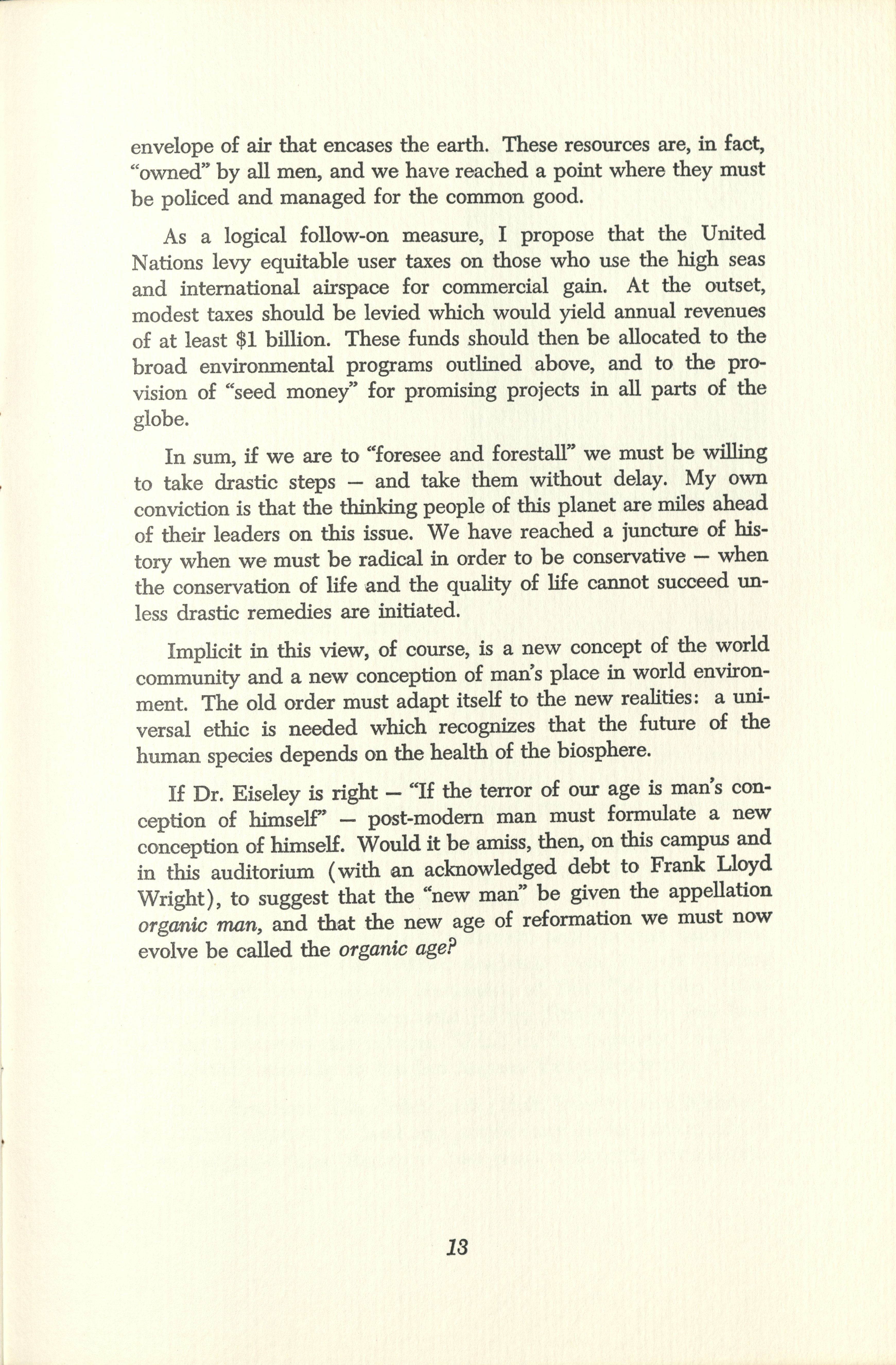 "The World Environment: A Program For The People of Planet Earth," Eleventh Annual Grady Gammage Memorial Lecture, Arizona State University, Tempe, Arizona, February 16, 1972