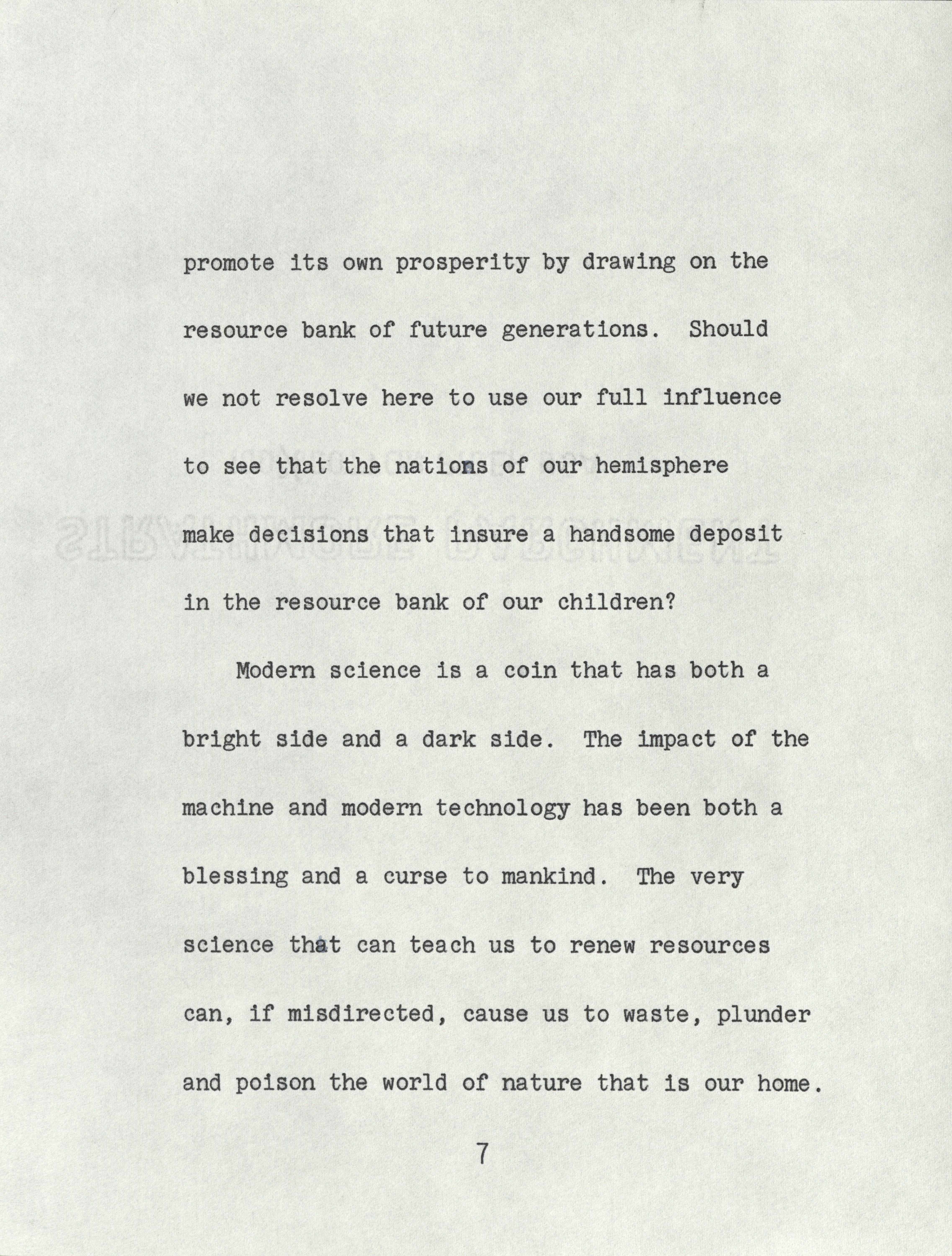 File #6897: "Remarks to The Inter-American Specialized Conference to Deal With Problems Relating to the Conservation of Renewable Natural Resources in the Western Hemisphere, Mar Del Plata, Argentina, October 18, 1965"