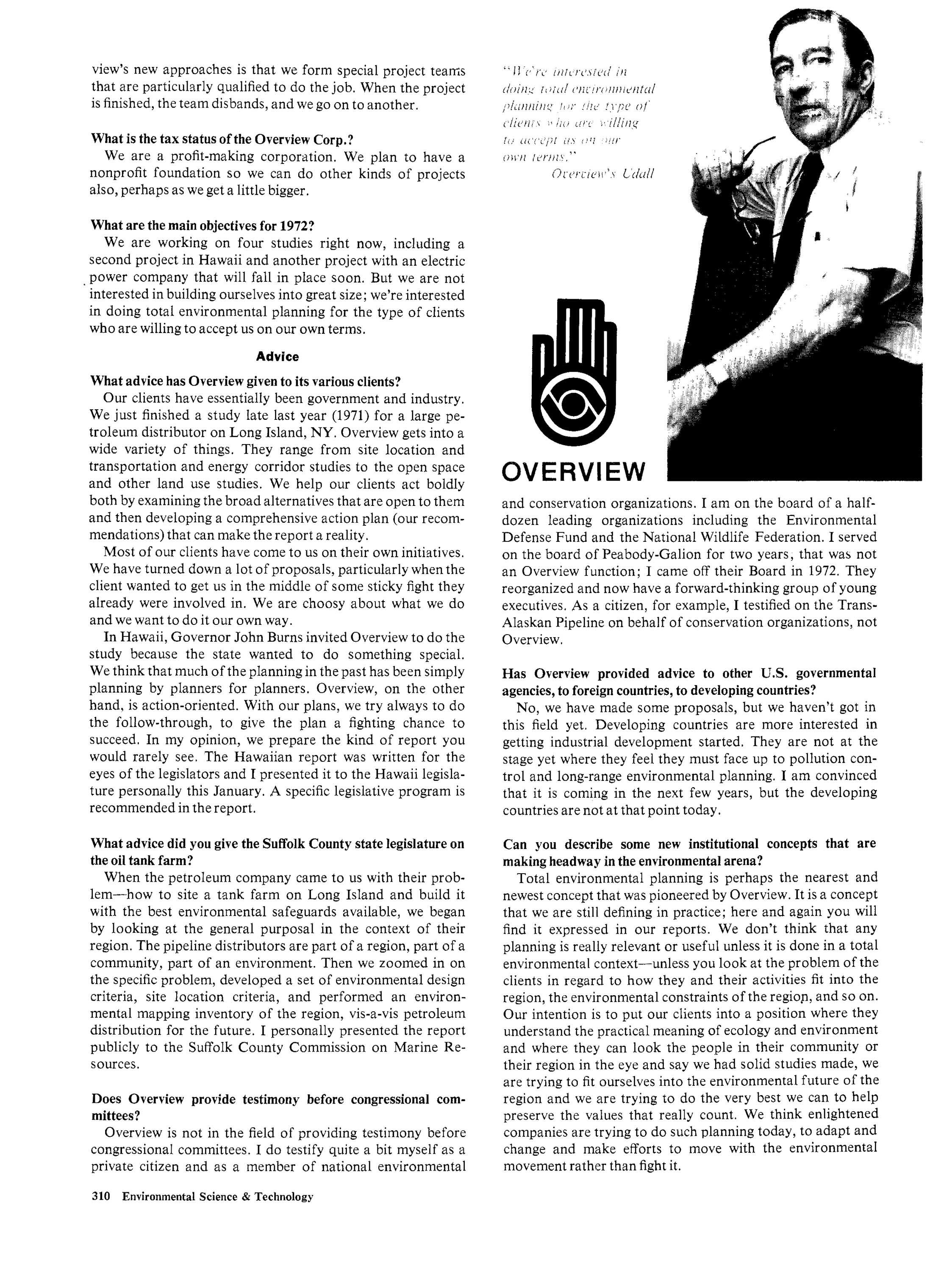 ES&T interview Stewart Udall, Environmental Science & Technology, April 1972.