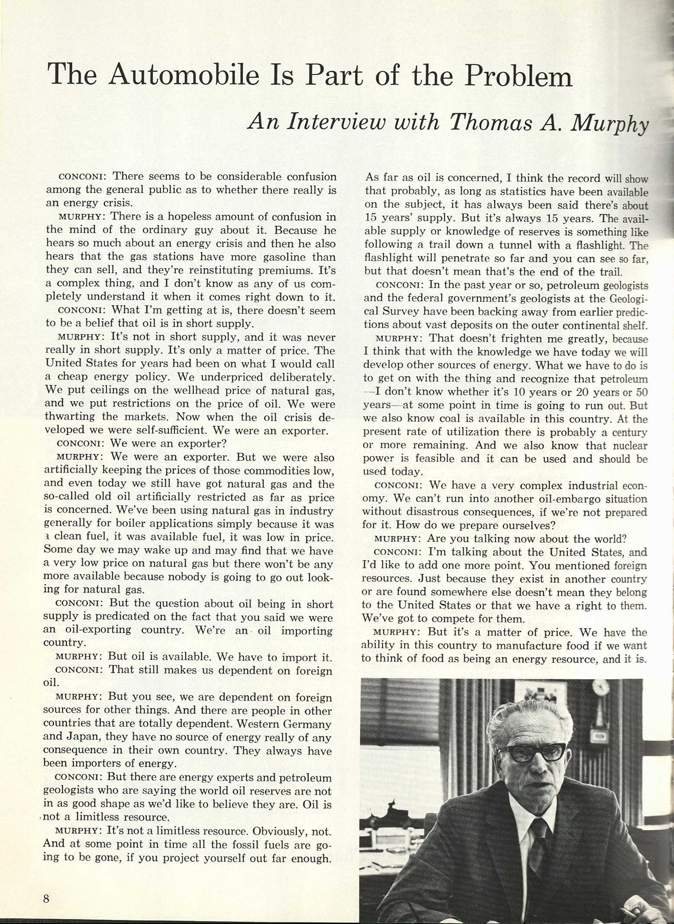 File #7034: "The Energy Crisis: Three Perspectives. There Are No Technological Solutions, An Interview with Stewart L. Udall, Living Wilderness, July 1975."
