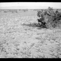 Shows scattered acacia like [trees] with mts. covered with Euphorbia. [Shantz travel journal, Apr. 11, 1920]