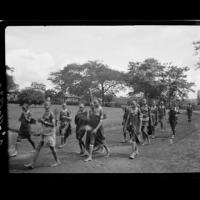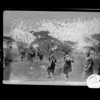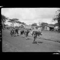 Near Embu, a bad passage through a papyrus swamp on river. Our cars awaiting a chance to cross - about 40 or 50 ox carts here. [Shantz travel journal, May 6, 1920]