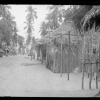 Cocoanut and indigenous houses with cocoanut roofs, fences and sides in some cases, usually poles and mud for the sides. [Shantz travel journal, Apr. 2, 1920]