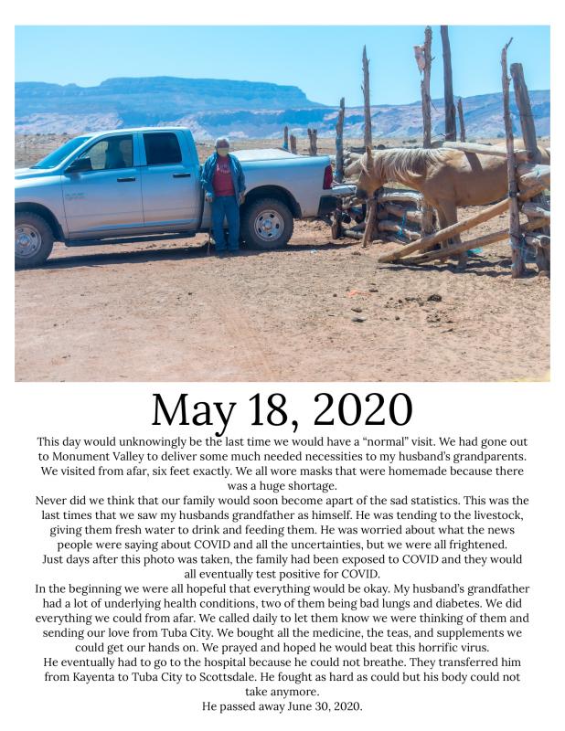 The project, "Fourth World Covid", highlighting her creator's community, her family, and herself through interviews and photographs.