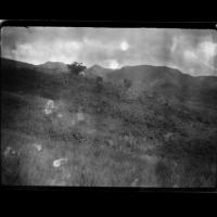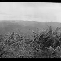 Corn - manihot. Manihot seems recently to have been introduced into this country, for all plantings are young. Bananas with small good type. Hills and plantations in the back. [Shantz travel journal, Mar. 16, 1920]