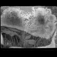 Abyssinian banana at water edge - high forest in back. The forest along stream becomes more and more prominent and finally - a high forest type, great tall white trunk trees and stream and mt. with Musa abyssinica everywhere. Agriculture along here…