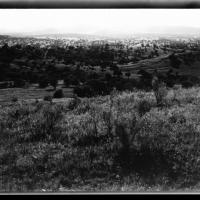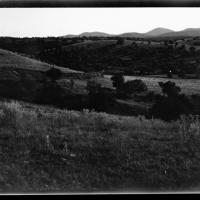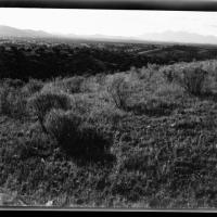 Panorama of Lyle Canyon area, showing Emory oak, Bouteloua gracilis, Hilaria belangeri, Senecio Douglasii, Bouteloua hirsuta and Quercus emoryi and arizonica.